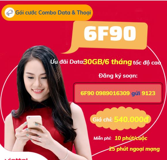 Bạn có nhu cầu tìm gói cước với thời hạn 6 tháng dùng? Bạn không biết gói cước nào sở hữu ưu đãi hấp dẫn với chi phí tiết kiệm nhất? Vậy hãy tham khảo ngay gói cước 6F90 Viettel dưới đây nhé.