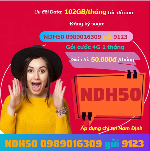 - Phạm vi được đăng ký dùng gói NDH50: Chỉ tỉnh thành Nam Định
