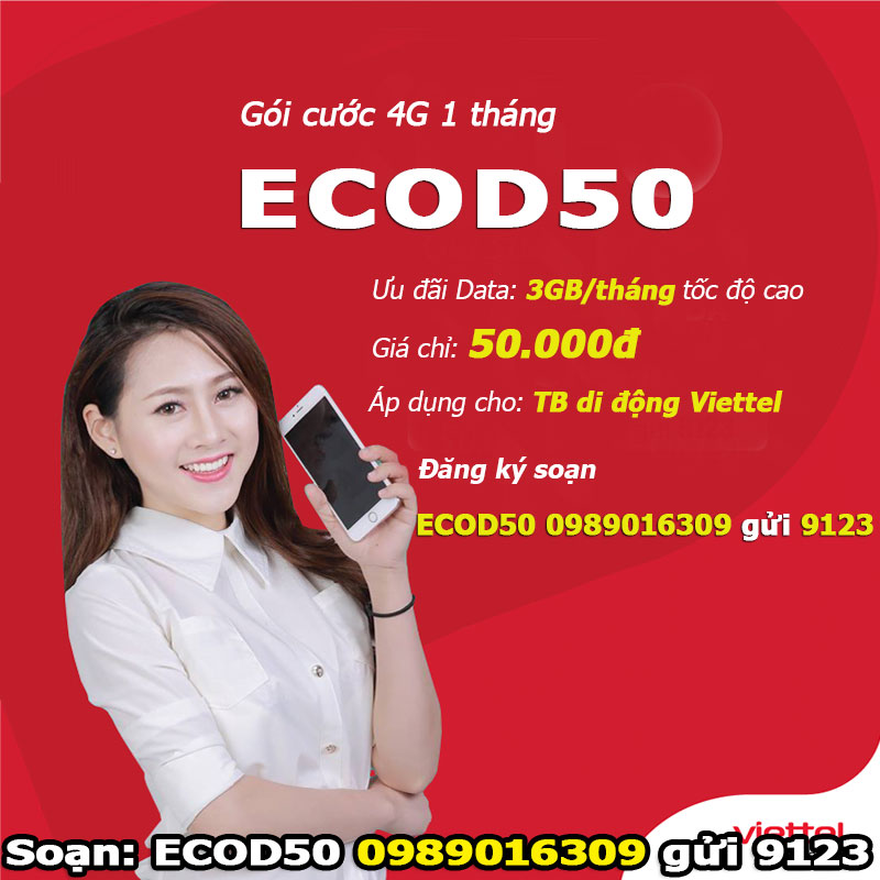- ECOD50: Là tên của gói 4G Viettel 1 tháng.