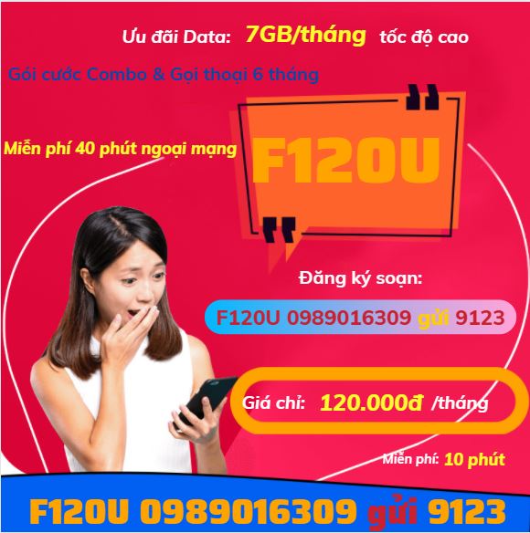 Để nhận ngay ưu đãi siêu hấp dẫn từ gói F120U Viettel, bạn soạn: