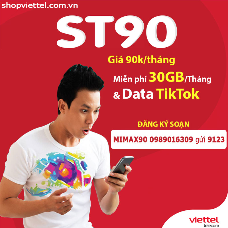 Tham khảo thêm: Gói ST90K Viettel - ưu đãi siêu hấp dẫn với 1Gb/ ngày, 30GB/ tháng và free mọi lưu lượng khi truy cập Tiktok, giá chỉ 90k.